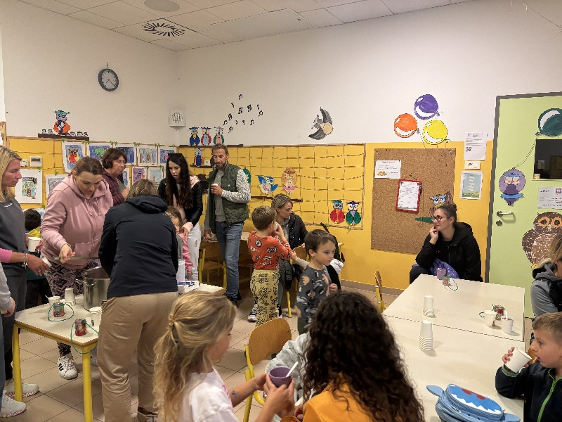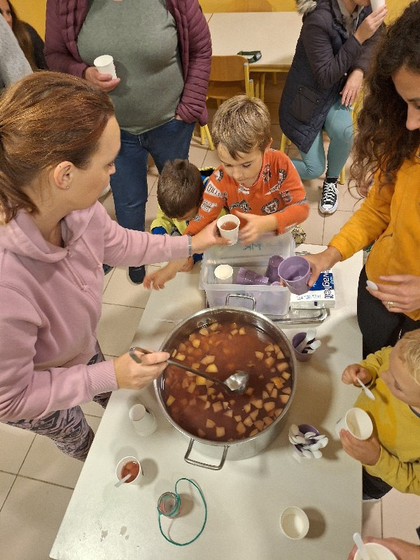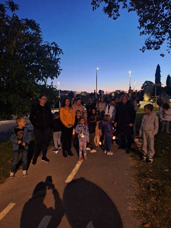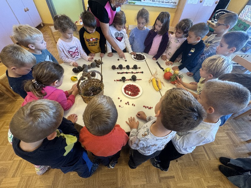 V mesecu prečudovitih barv in jesenskega vetra smo pridno nabirali in prinašali v vrtec jesenske plodove. Poimenovali smo jih, se igrali z njimi, otipali, vonjali, ustvarjali vzorce. Naučili smo se kar nekaj pesmic in deklamacij o jeseni. Rezali smo sadje in si pripravili kompot. Z njim smo se okrepčali po nočnem pohodu z lanternami, ki smo jih sami izdelali. Pohoda se je udeležilo veliko staršev in otrok, pridružile so se nam tudi babice, dedki, tete in strici tako, da bi ga lahko poimenovali kar Medgeneracijski pohod. Prebrali smo zgodbo o Ježku Snežku, ki gasi požar ter se pogovarjali o tem in izvedli Evakuacijo. Spoznali smo gasilce in njihovo vozilo. Ob tednu otroka smo se z avtobusom odpeljali v mesto Koper. Ogledali smo si predstavo Mehurčki, ter nekaj znamenitosti mesta Koper. Zelo smo bili navdušeni nad predstavo “Laboda” v Ankaranu. Otroci so morje tudi narisali.