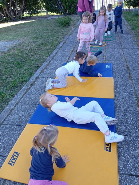 Starejše skupine so se z avtobusom odpravile na izlet v Adrio Ankaran, kjer so ob morju preživeli čudovit dan poln raziskovanja, gibanja in druženja. Mlajši otroci so se medtem razveselili športnega dopoldneva na vrtčevskem igrišču, kjer so skozi različne igre in izzive krepili prijateljske vezi in veselje do gibanja.