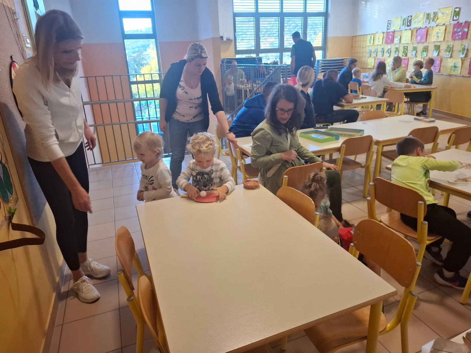 Mlajše Pikapolonice so se v družbi staršev lahko sproščeno seznanjale s prostori in strokovnim osebjem v novem delu vrtca, kjer so skupine starejših otrok. Starejše Mravlje pa so lahko mlajšim in odraslim pokazale, kaj vse znajo in zmorejo. Družili smo se v igralnici skupine Mravlje ter jedilnici.