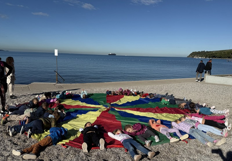Starejše skupine so se z avtobusom odpravile na izlet v Adrio Ankaran, kjer so ob morju preživeli čudovit dan poln raziskovanja, gibanja in druženja. Mlajši otroci so se medtem razveselili športnega dopoldneva na vrtčevskem igrišču, kjer so skozi različne igre in izzive krepili prijateljske vezi in veselje do gibanja.