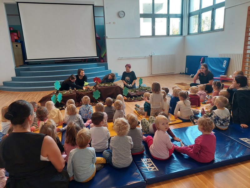 V tednu otroka smo izvedli prvo lutkovno predstavo za naše najmlajše z naslovom »Pod medvedovim dežnikom«.
