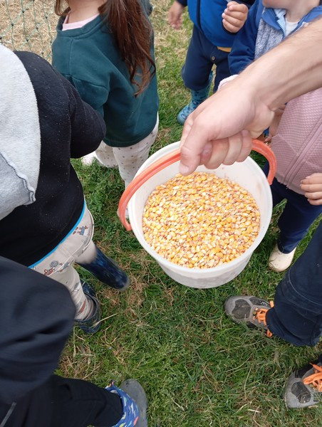 Posebno doživetje za otroke je bil obisk kmetije, kjer so se za kratek čas prelevili v prave male kmetovalce. Z radovednostjo so si ogledali kokoši in prašiče, pokukali k traktorju ter se sprehodili med oljkami. Ob tem so skozi igro in raziskovanje spoznavali, kako poteka življenje na kmetiji ter kako pomembna sta skrb za živali in naravo.